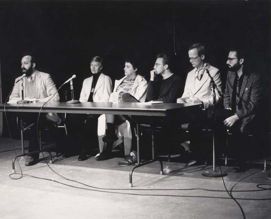 An Evening of Objectionable Art featuring a screening of IT'S ONLY ART (Karen Finley), a video made especially for this event. Also on view: works by Andres Serrano and Robert Mapplethorpe. Panel discussion on the topic of government funding, censorship, and the arts with panelists Sandy Daley (director of the film "Robert Having His Nipple Pierced," 1970), local performance artist Steve Griffith, Joel Snyder (program officer, Inter-Arts Program, National Endowment for the Arts), Hallwalls Video Curator Chris Hill, Hallwalls Program Director Ed Cardoni, and artist/UB Media Study professor Tony Conrad. Performances including IN THE SMALLEST HOUR (Steve Griffith)