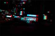 takes viewers on a night-time promenade through what becomes an alien cityscape.