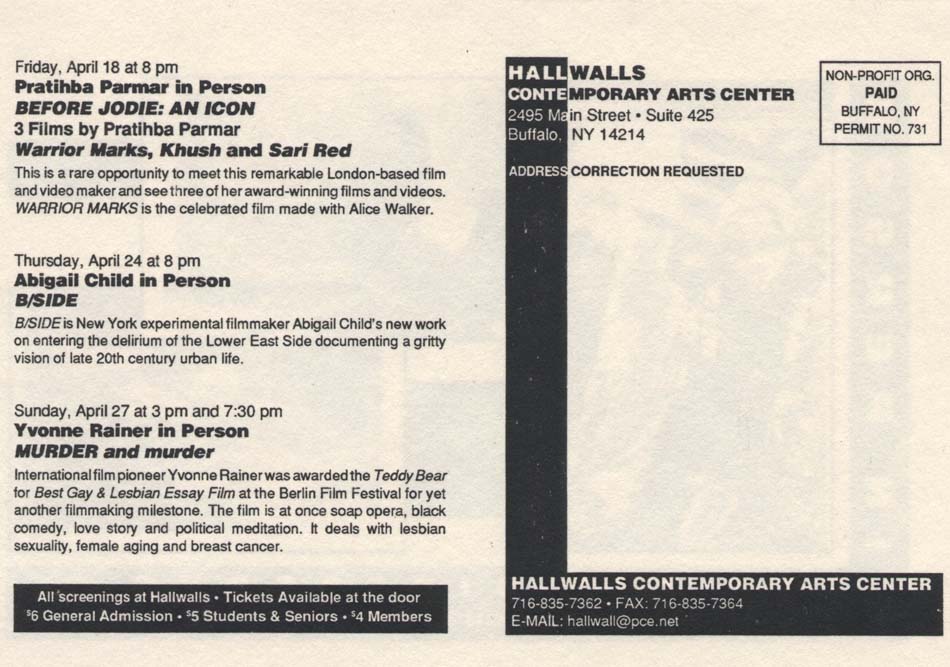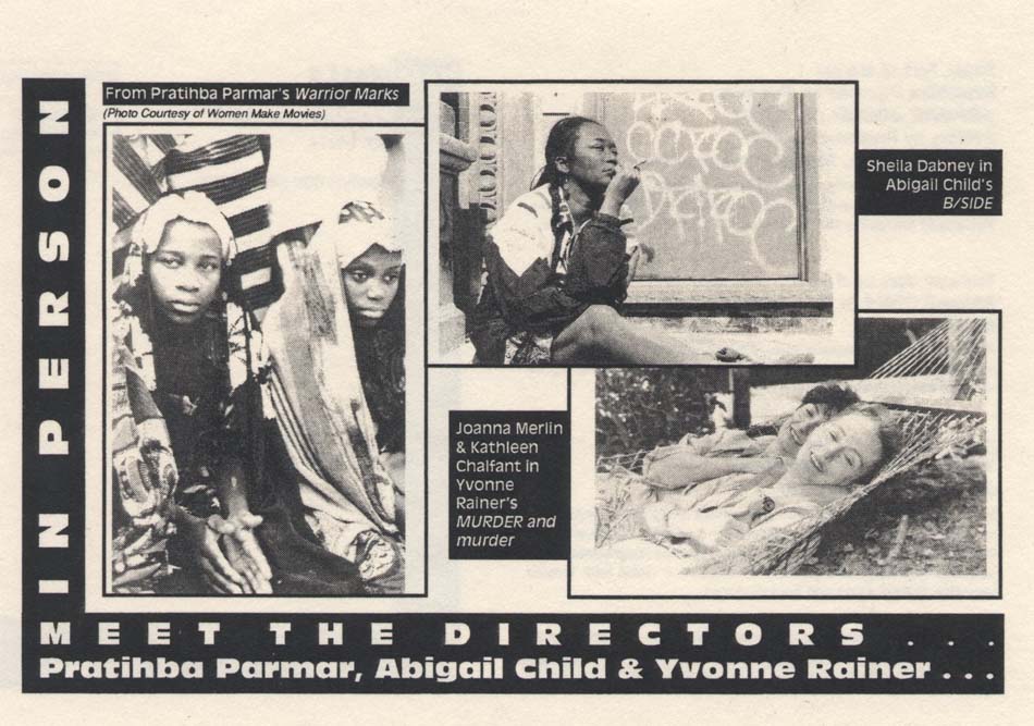 A film and video series of internationally acclaimed works that address issues of class, race, sexuality and health, including works by Pratibha Parmar; Abigail Child; and Yvonne Rainer