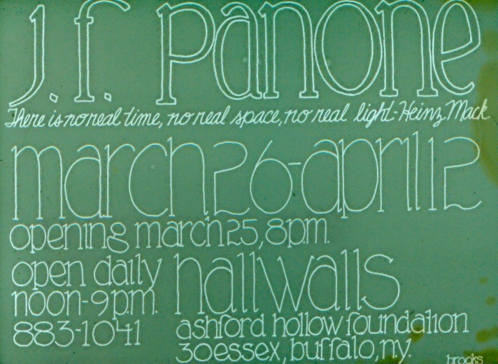 Three neon and one high-intensity incandescent light works by Joseph Panone at Hallwalls.