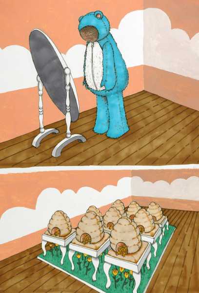 The personalized artistic practices of Roberley Bell, David Clayton, and Adam Weekley each originate from their own distinct points of departure and yet, along route, their work crosses into shared terrain and sensibilities. A preference for the imaginative over the real (or a reworking of the real into the imaginative); a sense of whimsy and an expression of sometimes inexpressible longing; a formal language and aspect that is hyper-realized with touches of pop iconography; a tendency to be more earnest than cynical; and a fantastical transformation of landscape are all prevalent and recurring themes in the works of these artists.