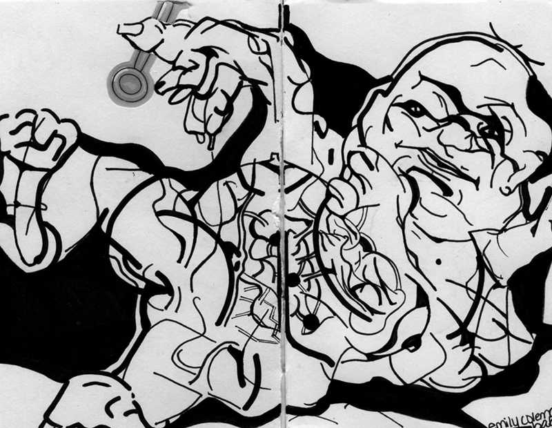 Shelby A. Baron's drawings are based on observations and lustful daydreams, a practice that began as doodles on any surface available to her growing up in both Buffalo, N.Y. and San Antonio, TX. Exposure to two remarkably different cities in two households resulted in her dependence upon 'hyper-observation' and obsessive drawing to catalog inconstant circumstances, odd characters and uncanny contraptions.