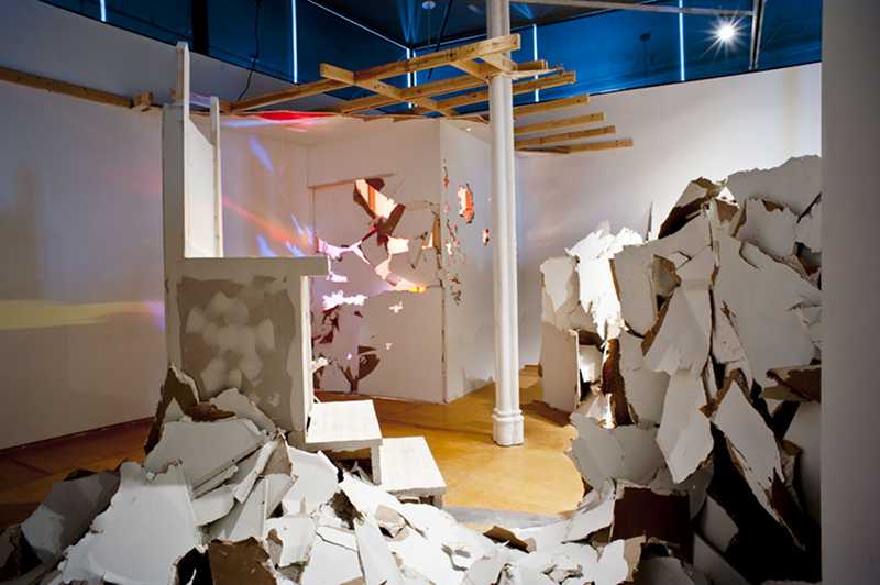For his exhibition at Hallwalls, Buffalo artist Michael Bosworth has taken up the challenge of a second recycling of gallery installation materials, applying an adaptive reuse methodology to a previously-constructed space within Hallwalls' gallery. Remaining as true to the given set of source materials as possible, Bosworth will be reconfiguring leftover drywall and studs into a sculptural, site-specific installation.