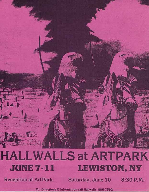 Five days of exhibitions, performances, and presentations at the state park in Lewiston, N.Y. by Carol Busch; Richard Gustin; Ladd Kessler; Kate Kennedy; David Kulik; Larry Lundy; John Maggiotto; Laurie Neaman; Sue Sapienza; Armand Saiia; Kim Teirlynck; John Toth; Peggy Yunque. A reception at Artpark on Saturday June 10