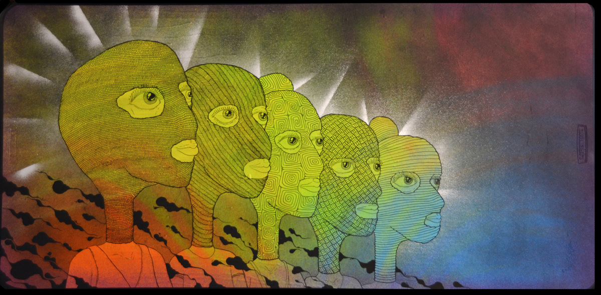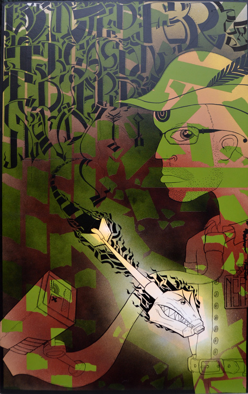 As a long-established venue for free speech and freedom of expression, Hallwalls is pleased to present a new series of dynamic paintings by Cincinnati artist OGRE, each depicting historical figures from diverse eras who have all been—for whatever reason—deemed as "heretics." Depicted in a fluid style that draws upon illustration and tagging techniques filtered through a fine art practice, OGRE's library of hareuhticks includes portraits of Charles Darwin, Joan of Arc, Pussy Riot, Edward Snowden, Nikola Tesla, Yoko Ono, Malala Yousafzai, Jack Kevorkian, Galileo Galilei and Miley Cyrus.