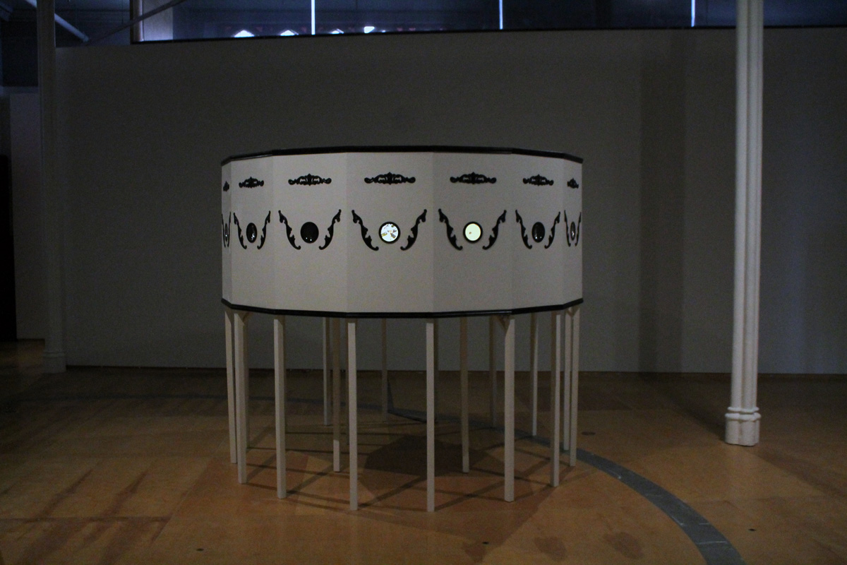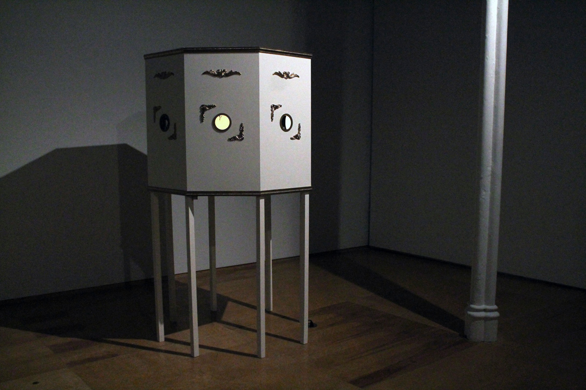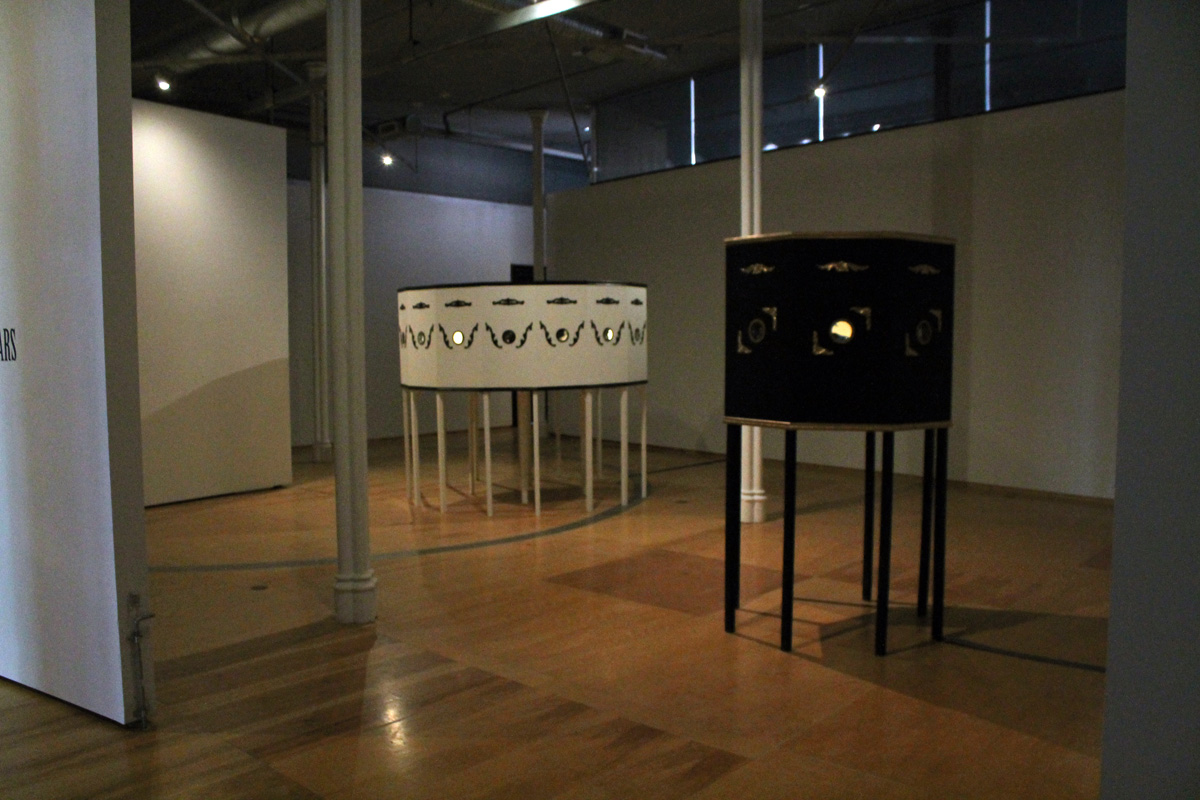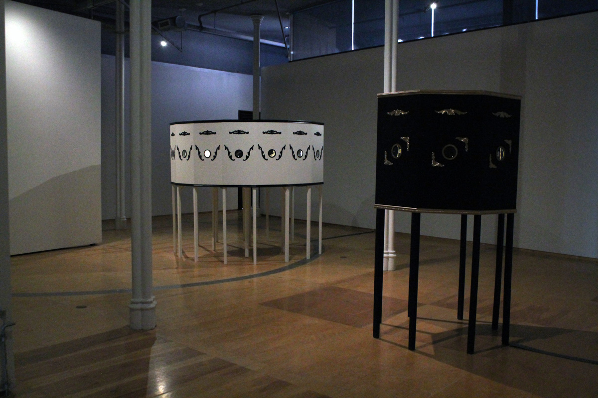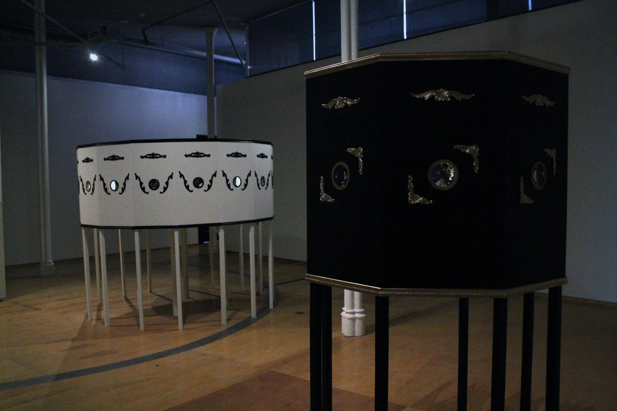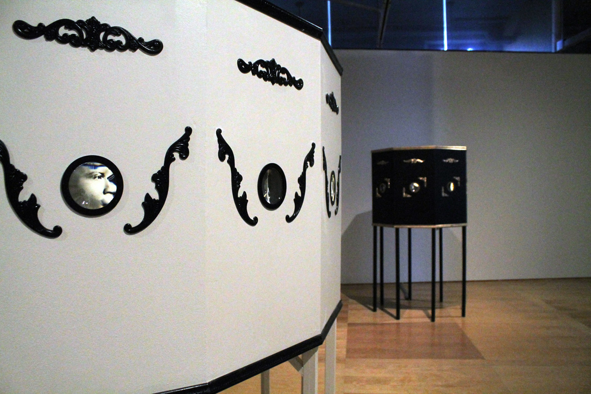 Hallwalls is pleased to present a new exhibition by artist Wayne Hodge, conceptualized around his collage imagery while building on its visual language and expanding it through incorporating sculptural elements. On a trip to Germany a few years ago, Hodge was able to see two different working Kaiser panorama. The Kaiser panorama is a late 19th century optical device that predates cinema. It can best be described as a large stereo-optic device that many can view at once. The viewer looks through a binocular and images rotate every few seconds. Hodge will design and build three devices based on the Kaiser panorama's designs and scale, creating a sequential narrative of images viewable through the machine. The imagery will be a continuation of the steampunk/Afrofuturist imagery developed with his previous collage work.