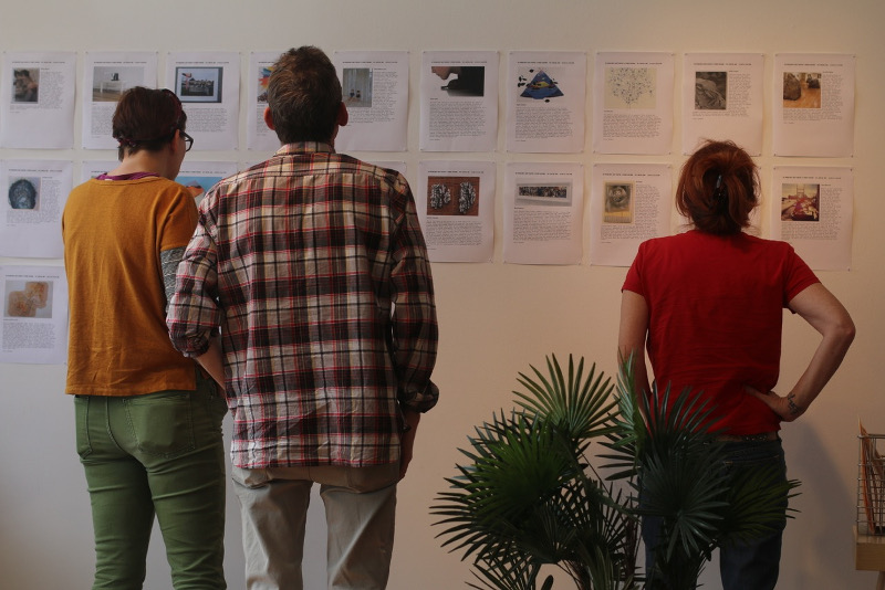 Since 2005, Lori Waxman has conducted a work of performance art about art criticism through her ongoing performance 60 wrd/min art critic. During these performances, Waxman reviews artwork by area artists and provides a brief written review on a first-come, first-served basis.