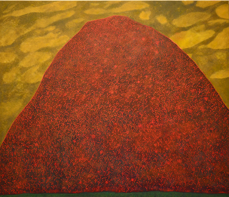 Though distilled into broad symbolic forms or abstract landscapes, Schirm's work often springs from his own experiences during the Vietnam War and paintings may allude to the scenes of horrific and senseless battles, the strafing of weapons across a landscape, " whose laser-like blazes of fired bullets gave a distinctive hum of un-worldliness to the darkness." Though his depictions of landscape forms even touch upon the pastoral in their depiction and use of color, Schirm's original point of departure may be explosions, fields of blood, or holes riddling a form, collapsing history and the artist's experience—often sliding into the surreal realm of memory—with the traditional painterly observance of the natural beauty and power of the real world.