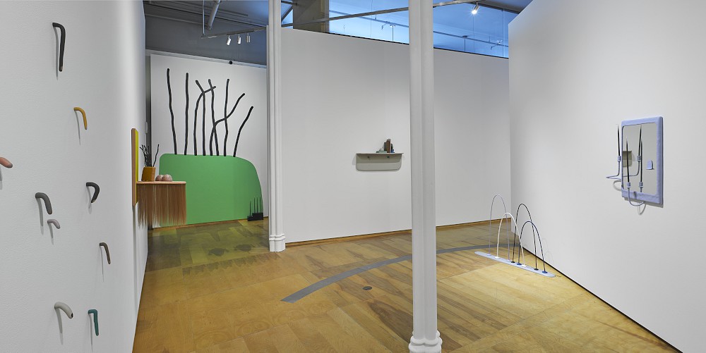 There is an internal sense of pathos that pierces the good humor of their surfaces. The works succinctly evoke a quality of potential failure through their postures and sometimes fragile components. Yet, at the same time, they are complete and—if not entirely confident—sufficiently resilient to maintain themselves and some sense of ephemeral dignity. Their material nature often emits a tentative quality—perhaps the hesitancy of a tourist—though they are never undermined by uncertainty. Rohlfs finds a fine line between pathos and a confident sense of self.