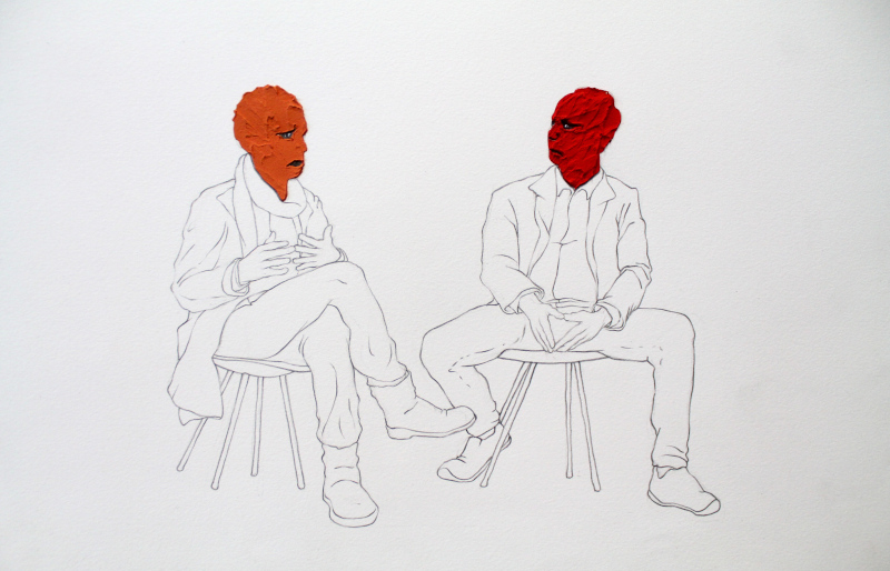 JM: Extra bonus points to Julia Dzwonkoski for landing upon a very apparent schtick—"I'll make drawings about ghosts!"—without the result becoming schticky. For the simplicity of her ghost form (a curvy line with two dashes), Dzwonkoski manages an encyclopedic range of scenarios, gags, and philosophical moments. While admirably humorous, they surpass their own cheek with great eloquence and frequently give us pause to think. And given the repetition of the core element of the ghost, Dzwonkoski manages an endlessly compelling deftness in her formal pictorial arrangements. The whole idea sounds like a one-liner but the actual works accrue together to plumb much more resonant depths.