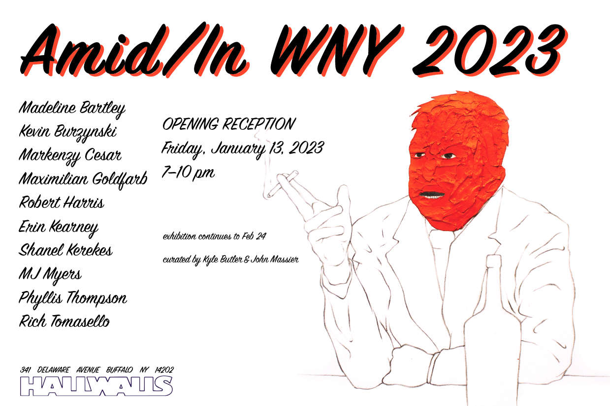 From 2015 to 2017, Hallwalls presented a series of eight regional group exhibitions under the over-arching rubric of Amid/In Western New York, a coy allusion to a multi-venue biennial from the previous decade called Beyond/In Western New York. Where Beyond/In was anchored by the Albright-Knox Art Gallery, helming a group of galleries, museums, and curators from Buffalo to Lewiston, Amid/In was decidedly low-fidelity. Humble curators poking their noses into over 200 artists' studios and exhibiting the work of 78 artists across all media. Five years after that final group exhibition, the project was revived with Amid/In WNY 2022 and continues this year with Amid/in WNY 2023.
