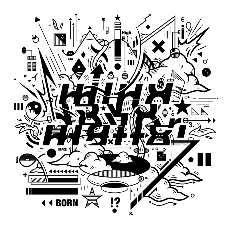 Wong's profession as a graphic designer also informs his weaving of distinct symbols, iconographies, and typography throughout works that may be blunt and concise or manically detailed in expression. Again and again, Wong's works assert a sense of affirmation. They are imbued with possibility and exude positive energy, amplified by Wong's energetic and graphic stylizations. In a pair of lightbox sculptures, Wong takes the oft-used—let's say ubiquitously over-used—symbol of yin-yang and refashions it as an ebullient piece of signage framed and newly-defined by the phrase SUPER CULTURE. He transports the symbol from cliché and nudges it back towards a signifier of Chinese American ethnicity, culture, and identity. At the same time, this act of cultural reclamation is not ethnically-exclusive—in Wong's dynamic rendering, there is also the idea that ALL are welcome within the SUPER CULTURE.