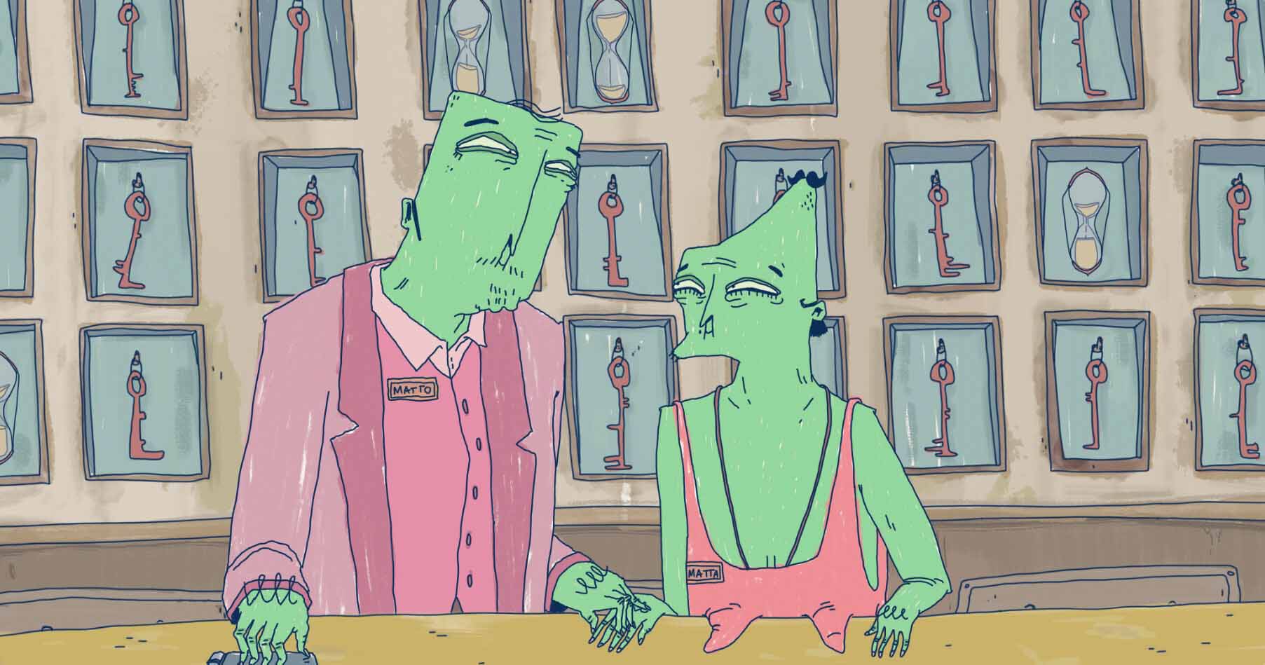 Matta and Matto I Bianca Caderas & Kerstin Zemp In a dystopian world where touch is forbidden, Matta and Matto offer refuge to the lonely at Hotel Vaip. In the deceptive labyrinth of mind-bending rooms at their transient hotel, deepest desires are fulfilled and surpassed-but this comes at a price.