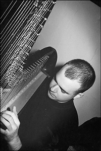 Rhodri Davies is a freelance musician based in London. A versatile harpist, his experience spans solo, concerto, orchestral, chamber, session, pop, background music and West End musicals. He is one of the few harpists working in the field of free improvisation and is widely acclaimed for developing a new and exciting voice for the harp. He frequently performs in festivals across Europe, America and Canada. He is accompanist to the young soprano Charlotte Church, with whom he has performed across the world. Rhodri has recorded numerous CDs to critical acclaim and made several appearances on television, radio and video. Born in Aberystwyth, Wales in 1971, Rhodri has played the harp since the age of seven. He gained a BMus (Hons) from Sheffield University, a Masters from Huddersfield University and a Postgraduate Certificate from Trinity College of Music, London. He has studied harp with Frank Sternefeld, Charlotte Seale, Hugh Webb and Sioned Williams. He teaches harp at The Latymer Music Centre and specialises in improvisation workshops for COMA, universities and music colleges.