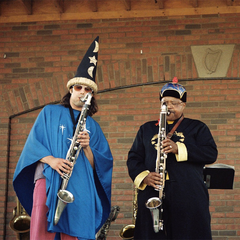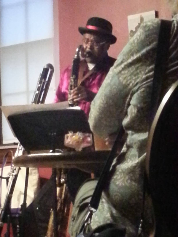 Rey Scott at Hallwalls: Rey Scott (1944-2018) played at Hallwalls in the New Jazz Orchestra of Buffalo, the New Jazz Symphonia, and the Composers Alliance of Buffalo, all Hallwalls resident ensembles put together in the early to mid 1990s by Don Metz (now of the Burchfield Penney Art Center), John Bacon, and Rey himself. Rey also played in the Buffalo Improvisers Orchestra put together by Steve Baczkowskiin 2010-2015, and in most ensembles of local musicians Hallwalls has put together to work with such HARP visiting artists-in-residence as William Parker (2006), Butch Morris (2008), Douglas R. Ewart (2008), & Roscoe Mitchell (2010), the last of which took place at the BPAC. In the ReyVolation Ensemble, Steve Baczkowski will be playing the baritone sax, Rey's primary instrument, although both are known as multi-instrumentalists. (Top photo, right: Steve and Rey play bass clarinets with their bari saxes standing by behind them.)