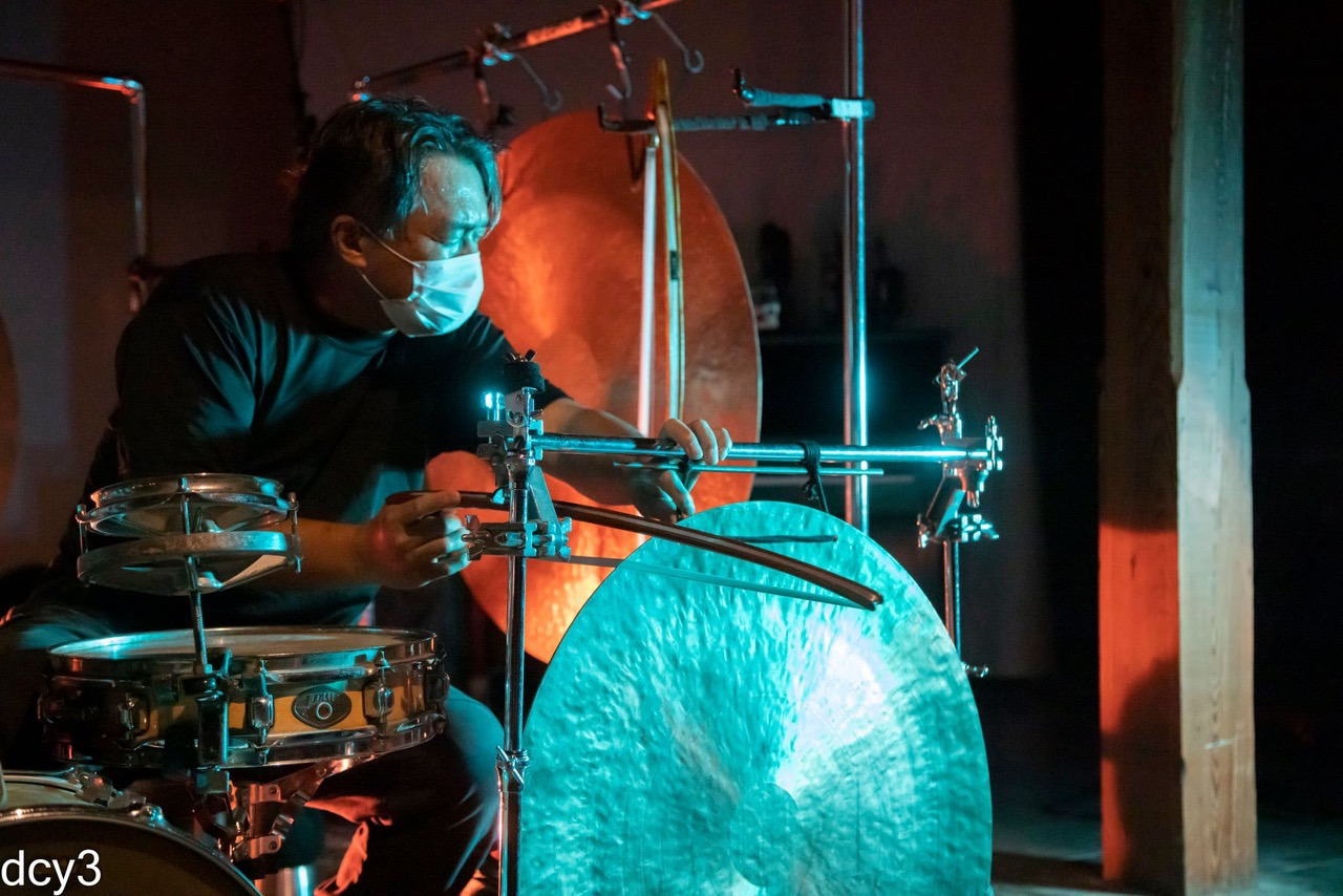 Nakatani's distinctive music centered around his adapted bowed gong, supported by an array of drums, cymbals, and singing bowls. In consort with his personally hand-carved Kobo Bows, he has spent decades refining and developing his sound as an arrangement of formations of vibrations, incorporated in shimmering layers of silence and texture. Within this contemporary work, one can still recognize the dramatic pacing, formal elegance and space (ma) felt in traditional Japanese music.