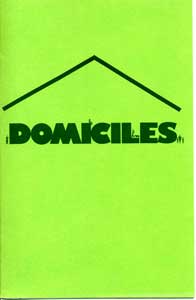 DOMICILES (March 29-April 26, 1986) Hallwalls Inc, Buffalo, NY, 1986. [A twelve page booklet printed in conjunction with an exhibition of sculpture with the same title. Included is an introduction by Catherine Howe (Curator, Hallwalls), writings by the artists and photographs of their works. The booklet was designed by Paul Szpakowski.]