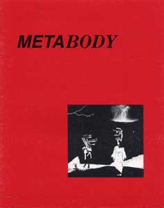 METABODY (May 2-30, 1986) Hallwalls Inc, Buffalo, NY, 1986. [A 25-page, black and white catalog composed by guest curator Bradley Eros, for the exhibition by the same name. The catalog includes an introduction bu Eros, as well as images and texts culled from a variety of sources, including the artists featured in the exhibition, namely: Stelarc, Alex Grey, TODT, Plauto, Aline Mare/Erotic Psyche, Lynne Augeri, Paul Laffoley, Holly Warburton, Joseph Nechvatal, and X Corp.]