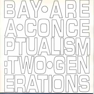 BAY AREA CONCEPTUALISM: TWO GENERATIONS: (September 15- November 10, 1989) Hallwalls Inc. Buffalo, NY, [A forty page black and white catalog printed in conjunction with the exhibition of the same name. It includes and introduction by Nayland Blake, other text by Renney Pritikin, and images of the artists' work. The catalog was designed by Shuffaloff Press.]