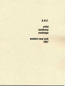 ARTIST RESIDENCY EXCHANGE: WESTERN NEW YORK 1997 Hallwalls Inc, Buffalo, NY, 1997. [A twenty page black and white booklet with an uncredited introduction, essays by Eric Gansworth, E. R. Baxter III, Karen vanMeenen, Jeanne Raffer-Beck, Paul Ford, photographs of the resident visual artists' work and excerpts from the resident writers' work, and a correspondence between Peter Anson and Jane Huber on the work of Becky McLaughlin. The Artist Residency Exchange was administered by Genesee Valley Council on the Arts, Hallwalls Contemporary Art Center, Niagara Council on the Arts, Pyramid Arts Center, Wayne County Council for the Arts. The booklet was designed by Leslie Wolff of Spencer Graphics.]