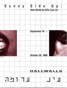 SUNNY SIDE UP: NEW WORKS BY HILLA LULU LIN (September 18-October 29, 1999) Hallwalls Inc, Buffalo, NY, 1999. [A brochure published in conjunction with the exhibition of the same title. Includes an essay by Sara Kellner and black and white stills of the artist's video work.]
