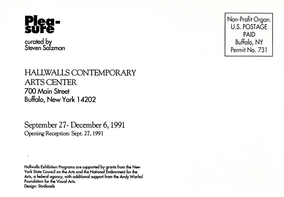 A visual arts exhibition curated by Steven Salzman featuring artists: Barbara Dahl; Sean Landers (FRENCH LADY, 1989; LAOCOON III, 1990); Marilyn Minter (ORAL MAKEUP #1 & #2, 1991); Andy Moses (SEA HITCHHIKER'S LONG JOURNEY, 1990; ALCHEMIST'S NOTES TO MODERN CHMISTRY, 1990); Richard Phillips (MORNING GOTH, 1989); Mari Rantanen (SWEET KEEPER, 1990; RELATIVE POSITIONS OF THE ESSENTIAL, 1990); Bonnie Rychlak (BEVERLY,1990; C.K.C. III, 1990); John Torreano (GOLD METAL, 1990; TUMBLE, 1991); Elizabeth Vahlsing (ONE-TWO-THREE, 1989; TIC-TAC-TOE, 1991); Sanford Wurmfeld (11-9(SEMI-SAT+N), 1988; 11-9 (YELLOW-WHITE), 1988).