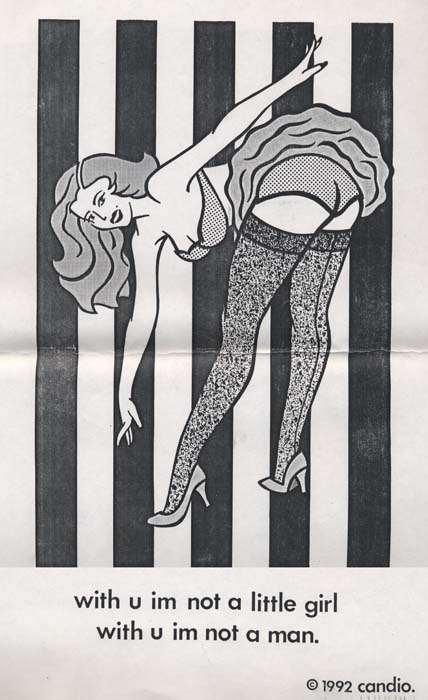 In the Project Room, a sized painting by Candio, MAN HAS TO BE HIS OWN SAVIOUR. Works featured in the exhibitiong include: IT'S A SAD MAN MY FRIEND WHO'S LIVING IN HIS OWN SKIN AND CAN'T STAND THE COMPANY; CHIPPIN' AWAY AT THE CHAIN OF MY OWN LIES CLIMBIN' A WALL A HUNDRED MILES HIGH; THERE WERE NO KEYS NO GUARDS JUST ONE FRIGHTENED MAN AND SOME OLD SHADOWS FOR BARS; HOW BEAUTIFUL THE RIVER FLOWS AND THE BIRDS THEY SING BUT U AND I WE'RE MESSIER THINGS; IT'S BEEN A LONG LONG DROUGHT BABY TONIGHT THE RAINS POURIN' DOWN ON OUR ROOF; I WENT DOWN INTO THE DESERT CITY JUST TRYIN' SO HARD TO SHED MY SKIN; THE SCARS WE CARRY REMAIN BUT THE PAIN SLIPS AWAY IT SEEMS. All works, the titles of which were taken from Bruce Springstein's "Lucky Touch" and "Human Touch" albums, are from 1993, 101" x 101" acrylic on canvas.