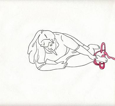 The jittering lines that comprise the animations play into the nervous energy and underlying pathos of the bits, though Cowan is not merely enacting herself as the butt of her own jokes. A buoyant unconcern is often readily apparent and we recognize a character that, despite her heavyweight aspect, is ultimately more self-aware (and content) than self-conscious.