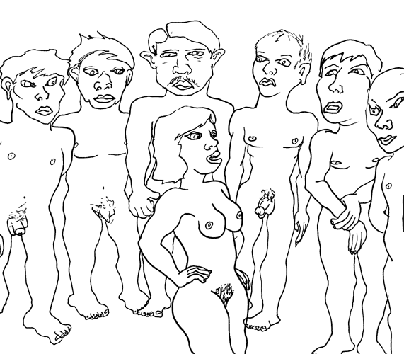 The derangement on display here is an intentional, imaginative space. It is a conscious intent, but it is textured heavily by unconscious impulses. It is a posture that liberates the drawn line that each engages in their work and allows it to pursue whatever wild tangent springs up in the moment. Beheadings. Mutations. Dark underbellies. Psycho-sexual creatures. A world gone awry. All lovingly rendered for your promiscuous visual pleasure.
