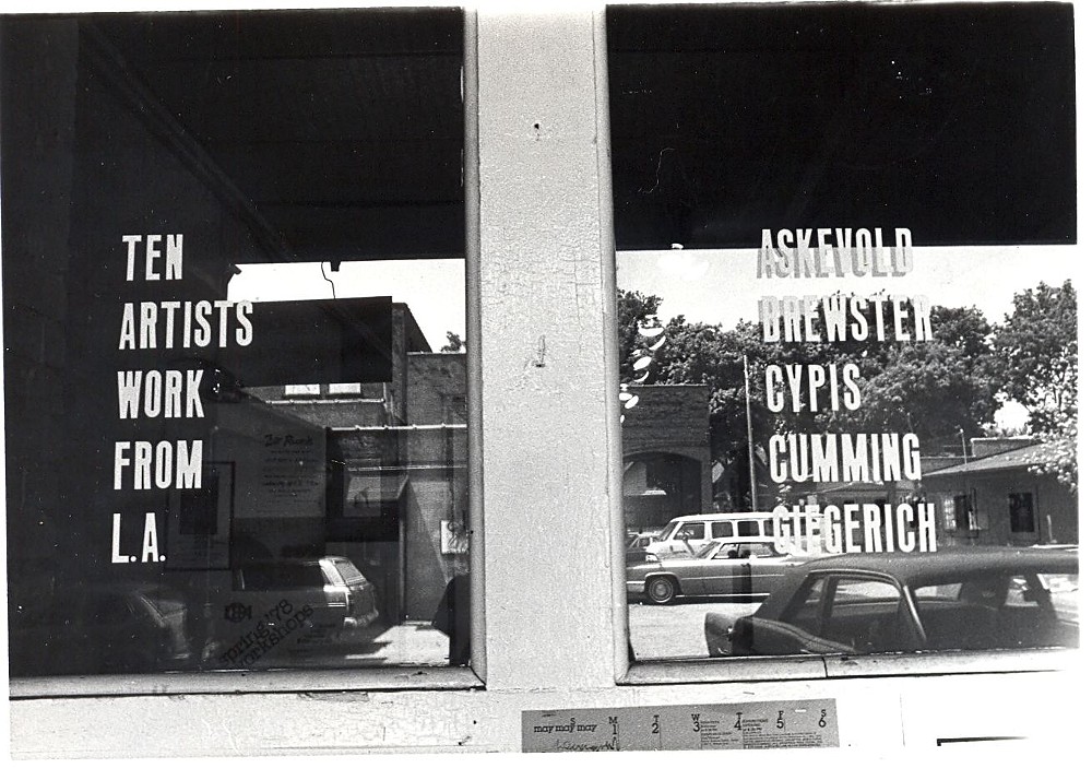 Co-curated by Constance Lewallen and Morgan Thomas, Ten Artists' Work Sent from Los Angeles to Hallwalls and Selected by Foundation for Art Resources, Inc, May 1978, includes drawings, photographs, installations, written texts, proposals for future works, objects, and video tapes. Featuring: David Askevold (VISITS, 1977, 34min, video, color); Michael Brewster (A DRAWING OF CONSIDERATIONS FOR DOING INSTALLATIONS IN UNKNOWN SPACES, 1978, ink on vellum, 24"x36"); Dorit Cypis (A MAN IS IN BUFFALO, 1978, installation); Robert Cumming (UNDERGROUND EXIZT CRESUS COMPLEX FILM "SHACK", 1977); Jill Giegerich (UNTITLED 1-3, 1977-78, mixed media); Raul Guerrero (9 UNTITLED drwaings, 1977; NEGRA EN HIMALAYAS, 1978, mixed media; PROJECTED MENU, 1978 mixed media; VUELO MUNDIAL, 1976, video, 5min); Steve Kahn (GETTING AROUND, 1976, B&W photo; RUNNING RIGHT, 1976, B&W photo); Judith Miller (BLACK TRIANGLE/TWO, 1978, B&W Photographs); Allen Ruppersberg (NOVEL THAT WRITES ITSELF, 1978, proposal); Ilene Segalove (SKIN CANCER, 1976, color video, 5min; PROFESSIONAL RETIREMENT HOME, 1974, B&W video, 8min; OH, IF I COULD ONLY DRAW, 1977, color video, 8min; WHY IS THE SKY BLUE, 1978, color video, 8min)