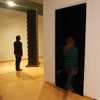Viewers are invited to access Hallway through a centrally-built and darkened passage that moves deeply into the work, turning quickly enough in a couple of directions to create an almost immediate disoriention. It's a sensation likely more pronounced for anyone already familiar with Hallwalls gallery, whose underlying and actual space is almost entirely hidden, as though the work were erasing all possible recollection to any work that had previously been exhibited there. Even more perhaps, it aspires to temporarily erase all notion that a gallery is even here.