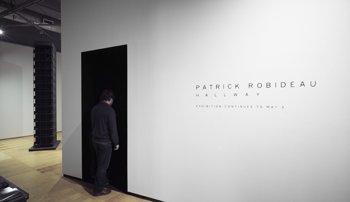 A key ingredient to Patrick Robideau's artistic practice is the manipulation of the built environment. Sometimes the work is an oversized diorama into which the viewer is intended to peer; sometimes his spaces are passageways that direct the viewer along predetermined paths; and sometimes these built environments operate as sets within which performative actions as staged. His new installation, Hallway, includes some of all these characteristics, as well as stand-alone sculptures incorporated both inside and outside the main work.