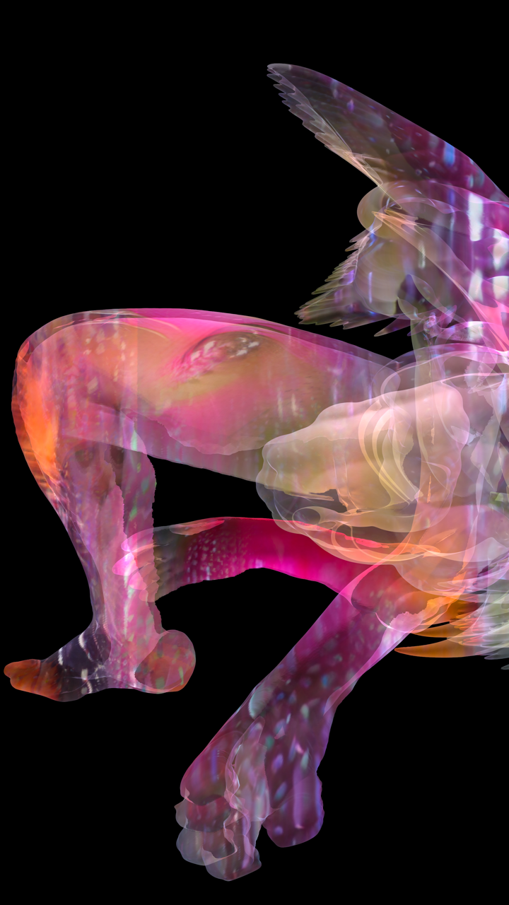 The exhibition features abstracted figures in various states of flux, unclear whether their transformation is painful or ecstatic. Fragments of recognizable human body parts are visible but appear otherworldly and slippery. Using 3D scans of themselves and other trans and gender-nonconforming people, the artist virtually rearranges and distorts these bodies, combining them with gestural biomorphic forms. These digital bodies are transmuted into physical sculptures through 3D printing and CNC routing in plastic and foam, which are then integrated with other media such as video, sound, and drawing to flesh out the world they come from.
