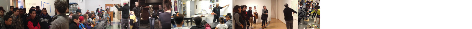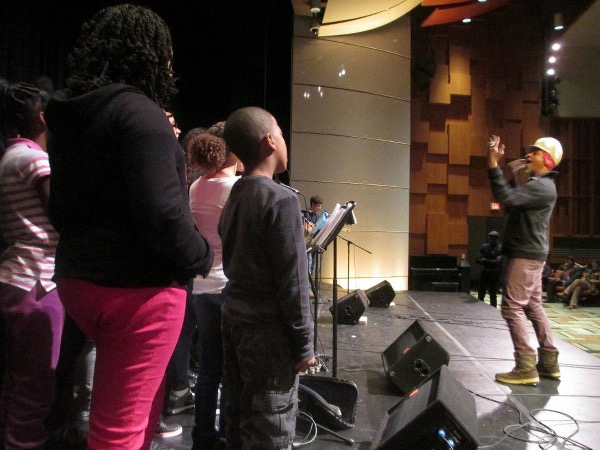 As part of Burnt Sugar the Arkestra Chamber's HARP residency at Hallwalls, the entire 9-piece ensemble performed for and with BAVPA students in the school's main auditorium.