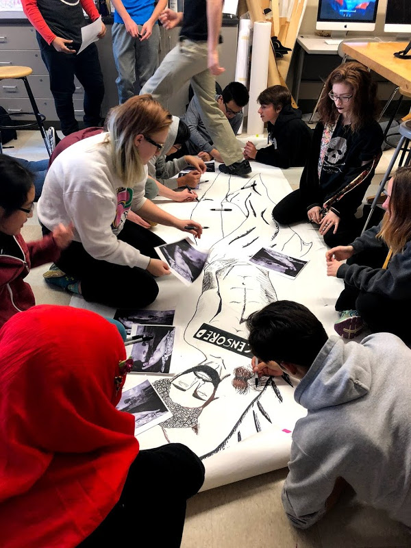 Studio art students at BPS City Honors work on inflatable sculptures inspired by the work of teaching artist, Benjamin Entner. The Exhibition of final works opened on January 18, 2018 at City Honors School.