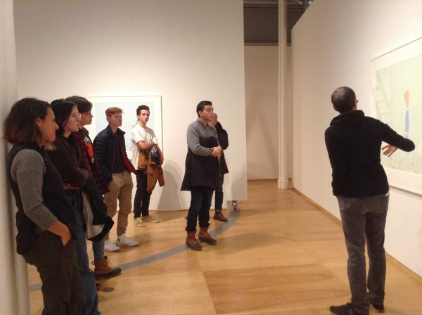 Laylah Ali gives a guided tour through her exhibition, Paintings and Drawings, with art students from the Nichols School.