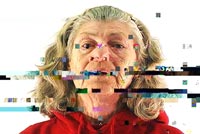 in the digital files, the portraits become corrupted, glitched, and broken,