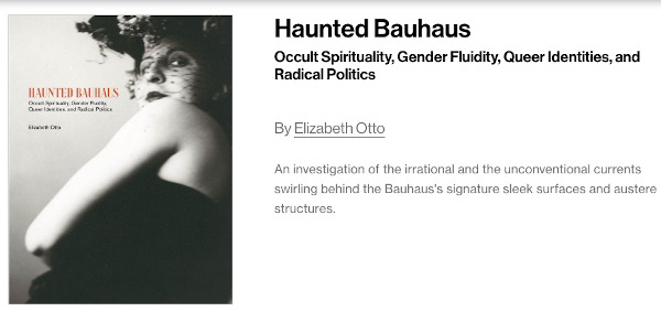 THE BOOK: Haunted Bauhaus: Occult Spirituality, Gender Fluidity, Queer Identities, and Radical Politics by Elizabeth Otto (MIT Press, 2019). An investigation of the irrational and the unconventional currents swirling behind the Bauhaus's signature sleek surfaces and austere structures.