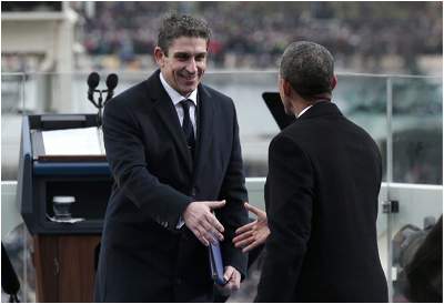 | Poet Richard Blanco with President Barack Obama on Inauguration Day, January 20, 2013. |