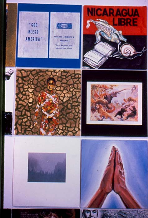 "The issue of collaboration…is extremely complex in relation to Group Material for it is not merely a matter of four artists who collaborate with each other ("Group Material"), but four artists who have collaborated, over the past six years, with literally hundreds of other artists.…MASS was conceived by Group Material in response to some current buzzwords often used to describe the contemporary art scene: "hot," "expressionist," "heroic," "violent," "adventurous," and "raw." In opposition to these, Group Material proposed a different spelling of contemporary culture: "MASS." To this end, Group Material invited almost two hundred artists to contribute an image [which had to be 12 inches by 12 inches] of their own: a photograph, a record cover, or an advertisement—to offer literally a signifier which would become the signified "MASS," a twelve-by-forty-foot word which also functions as an image, a concept, a representation, and finally a collaboration.…This is a new opportunity to reconsider "MASS" in all of its contemporary significance: mass, as in the masses; mass, as in scientific denisity; mass, as in mass culture and mass media; mass, as in a religious mass, etc., etc.…" (excerpt from an exhibition brochure written by William Olander for the MASS show at The New Museum in New York City, 1986, and quoted on page 107 of Show and Tell: A Chronicle of Group Material edited by Julie Ault, Four Corners Press, London UK, 2010)